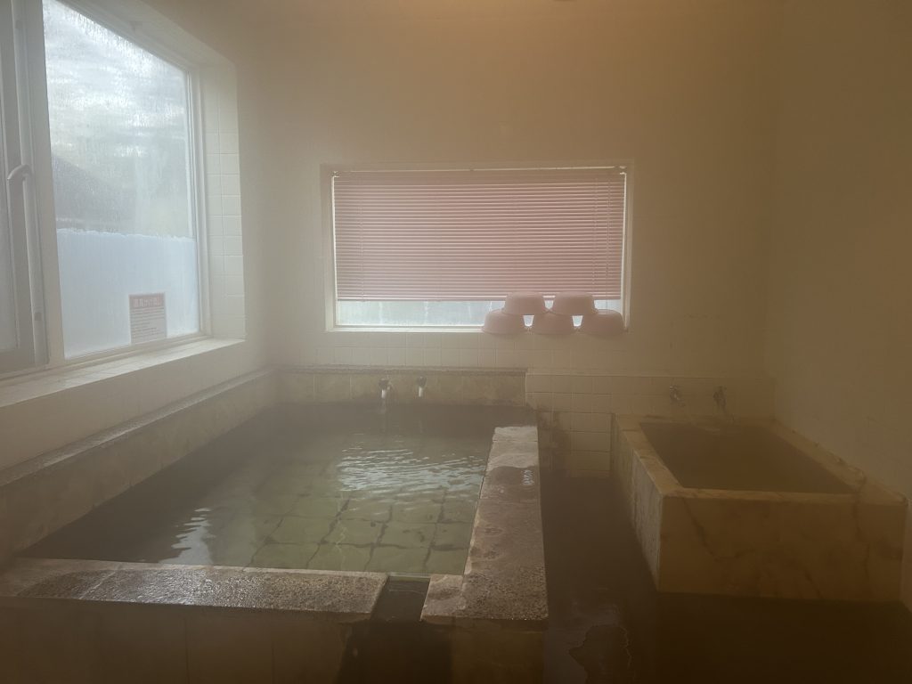1階の浴室は温泉かけ流しの贅沢なつくりです。2つの浴槽がありお好みの温度で調整できます。