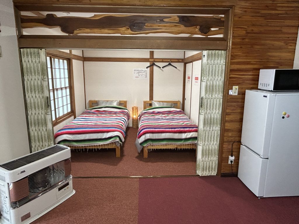 旅館の和室って素敵だけど、ベッドの方が落ち着くという方も多いはず。このお部屋は、和風の壁と障子で風情を出しつつ、床は絨毯、ベッドをご用意しました。まるで自宅にいるような感覚で、のんびりとくつろいでいただけます。
